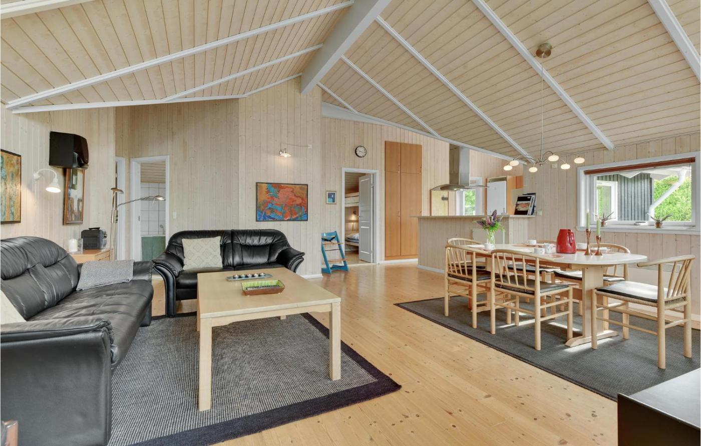 Three-Bedroom Holiday Home. This holiday home features a hot tub, sauna and fireplace. Boasting a private entrance, this air-conditioned holiday home features 1 living room, 3 separate bedrooms and 1 bathroom with a shower and a hairdryer. Guests will find a stovetop, a refrigerator, a dishwasher and kitchenware in the fully equipped kitchen. The holiday home also comes with a barbecue. Featuring a terrace, this holiday home also features a washing machine, a tea and coffee maker and a TV with cable channels. The unit has 4 beds.