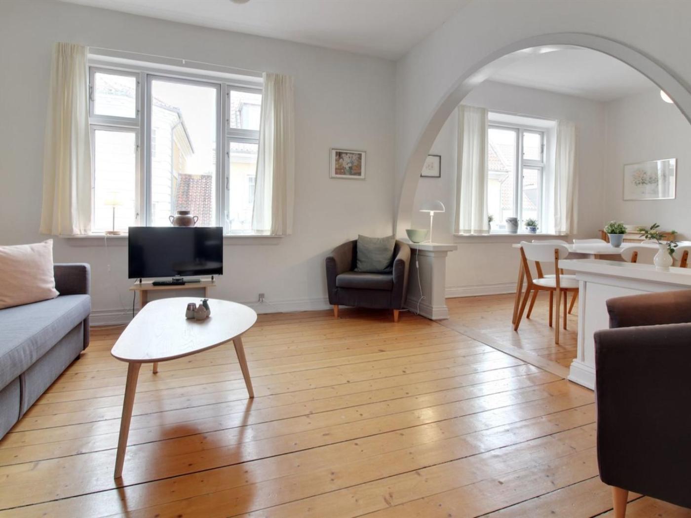 Apartment. This spacious apartment consists of 1 living room, 2 separate bedrooms and 1 bathroom with a shower. Guests can make meals in the kitchen that is equipped with a stovetop, a refrigerator, a dishwasher and kitchenware. This apartment provides a seating area and a TV. The unit offers 3 beds.