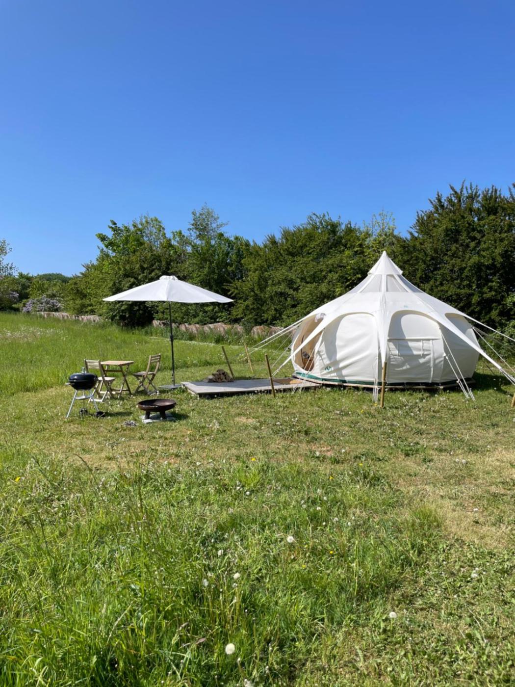 Tent. Guests will find a refrigerator in the kitchenette. The tent also features a barbecue. This tent has a shared bathroom, a private entrance and garden views. The unit has 2 beds.