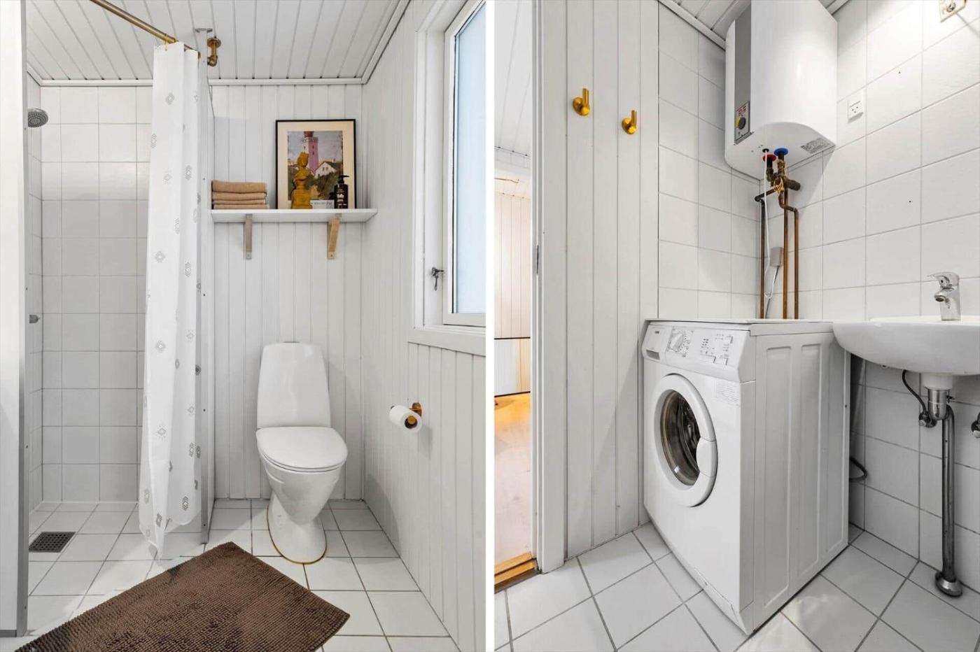 The holiday home has 3 bedrooms, a TV, a fully equipped kitchen with a dishwasher and an oven, a washing machine, and 2 bathrooms with a shower.